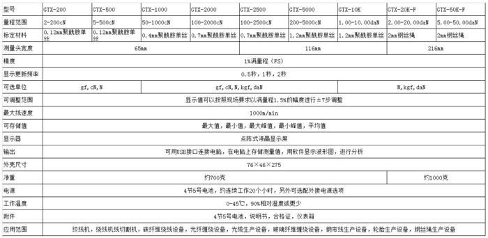 8. 張力測量范圍從0-200gf 到 5.00-50.00kgf可選